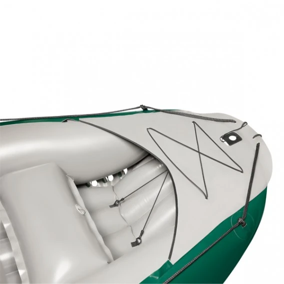 Das Ontario 450 S ist eine längere Version des bewährten Ontario 420. Ausgestattet ist es, zusätzlich zum Ontario 420, mit einem Selbstlezendem Boden und bietet mehr Platz für Gepäck. Das Boot eignet sich gut für Flusswanderungen mit der ganzen Familie kann aber auch als Wildwasserboot bis zur Stufe 3 genutzt werden. Sie werden überrascht sein, wie schnell und wendig sich das Ontario 450 S auf ruhigem Wasser paddeln lässt. Es ist zudem das schnellste Boot aus der Gumotex Produktion für eine so große Personenanzahl. Durch den Selbstlenzenden Boden fließt das Wasser, welches ins Boot gelangt, durch die Öffnungen im Heck wieder nach draußen.