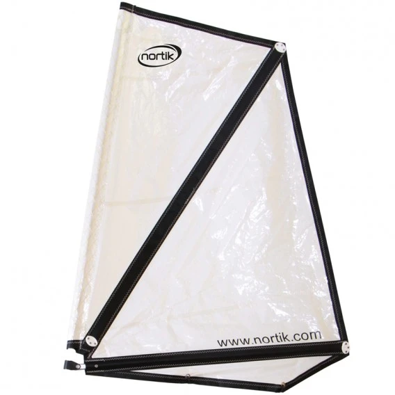 Das nortik kayak sail ist in zwei Größen erhältlich: 0,8 qm und 1,0 qm. Die kleinere Variante mit 0,8 qm ist die beliebteste und auch die sinnvollste für die meisten Einsätze.